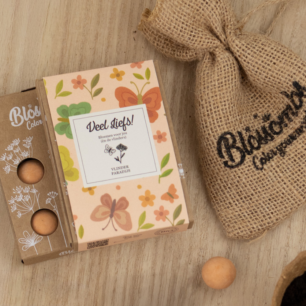 Vlinderparadijs small box gevuld met 4 bloembommen . Met dit vlinder paradijs mix laat je elke tuin fladderen. Vlinders symboliseren lichtheid, groei en verandering. Ideaal voor wie een nieuw begin wil vieren of een beetje licht wil brengen in moeilijke tijden. Check ook de andere mixen! Naast deze mini box bieden we ook een small…